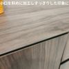 当然、無垢を貼って処理したほうが見た目も風合いもいいのですが、このテレビ台は斜めにカットすることにより小口が見えなくスッキリとした印象に仕上げました。