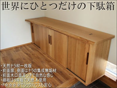 【オーダー下駄箱可能商品】【幅200 奥行44 高さ60 サイズ】楢(なら)一枚板靴箱引き戸200センチ幅のレビューを書く