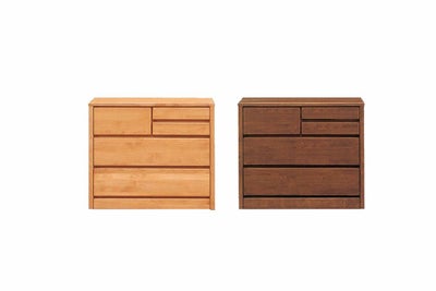 ブラウンを選びました。 材質に暖かみのあるチェストです。 使用前に同時購入したオイルを使用しました。 (使用直後はオイルの匂いがしばらくします) 発注後再度色選択に迷い、連絡したところ色見本の写真の掲載等、丁寧な対応をいただきました。 また、家具設置サービスがあり、階段を3階まで運送業者さんに運んでいただき助かりました。 振り込み入金の場合割引きもあります。 私はテレビ台として自室に設置しました。 高さもちょうど良く、引き出しも使い勝手がいいです。 大きい引き出しにはレールとストッパーが付いていて使い易いてす。 経年で色合いも楽しめますとの事で、それも楽しみにしています。