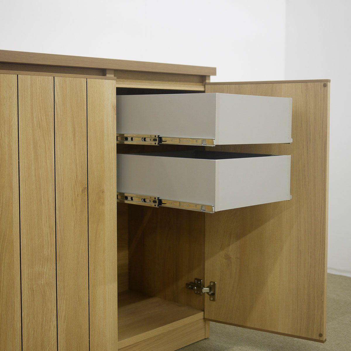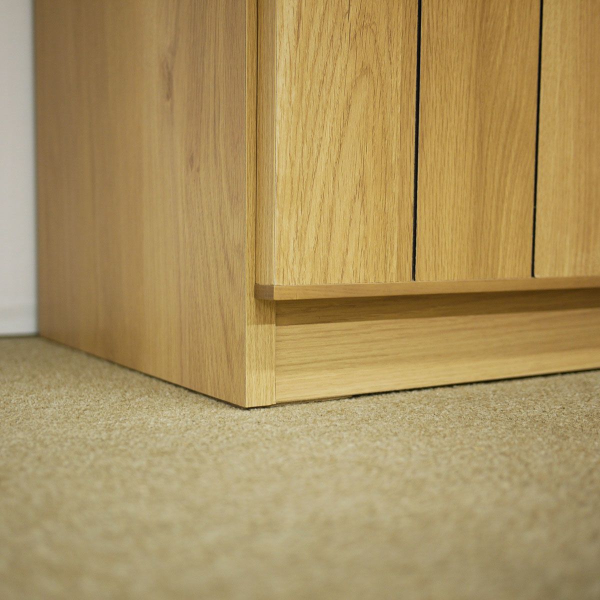テーブルの天板やキャビネットで裏側も化粧仕上げをし、背面が見えてもおかしくない商品。