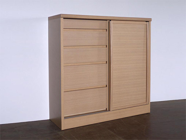テーブルの天板やキャビネットで裏側も化粧仕上げをし、背面が見えてもおかしくない商品。