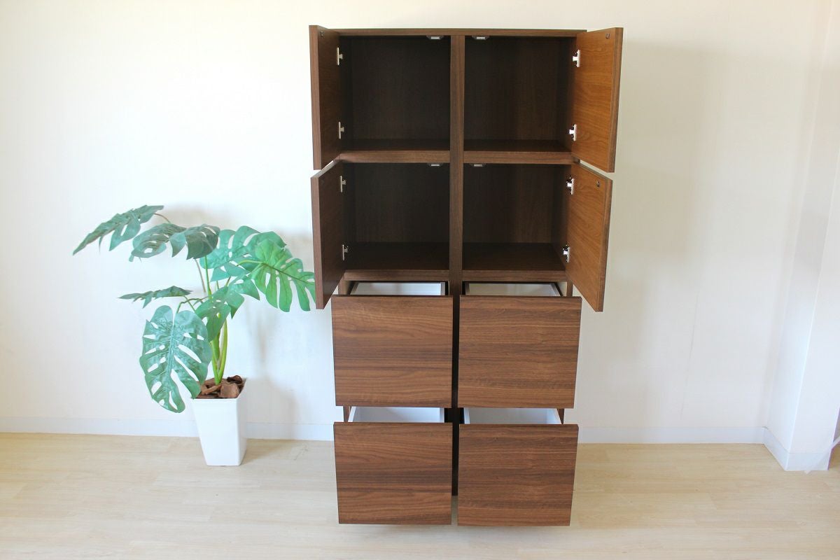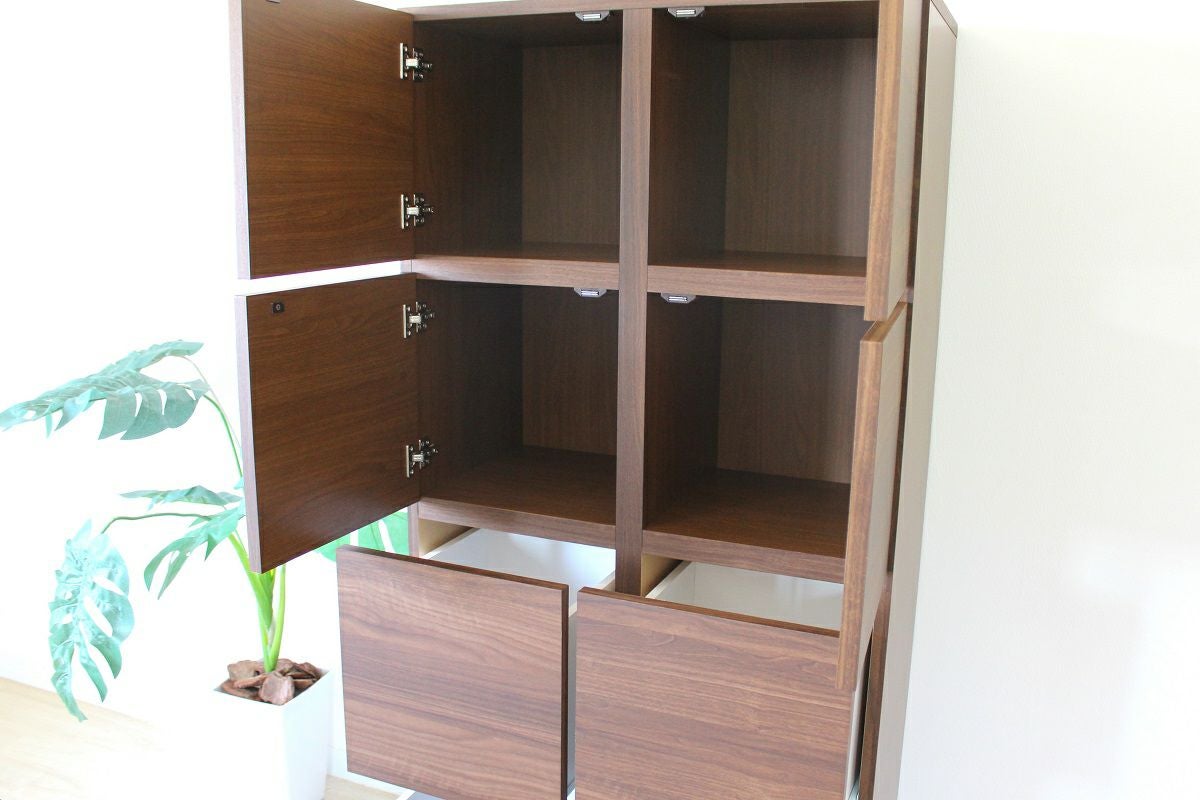奥行の内寸が45cm以上ある食器棚。ヘルシオなど奥行があるスチームオーブンも置けるタイプです(オーブンレンジのサイズはご自身でご確認ください)