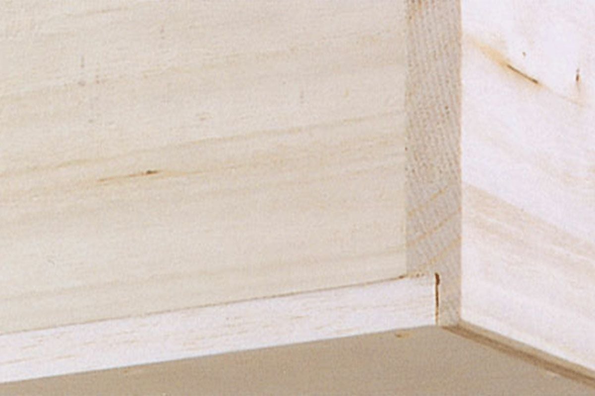 無垢材を薄くスライスした天然木を基材に貼り、天然木の風合いと無垢の弱点の反り割れ防止を両立した素材。