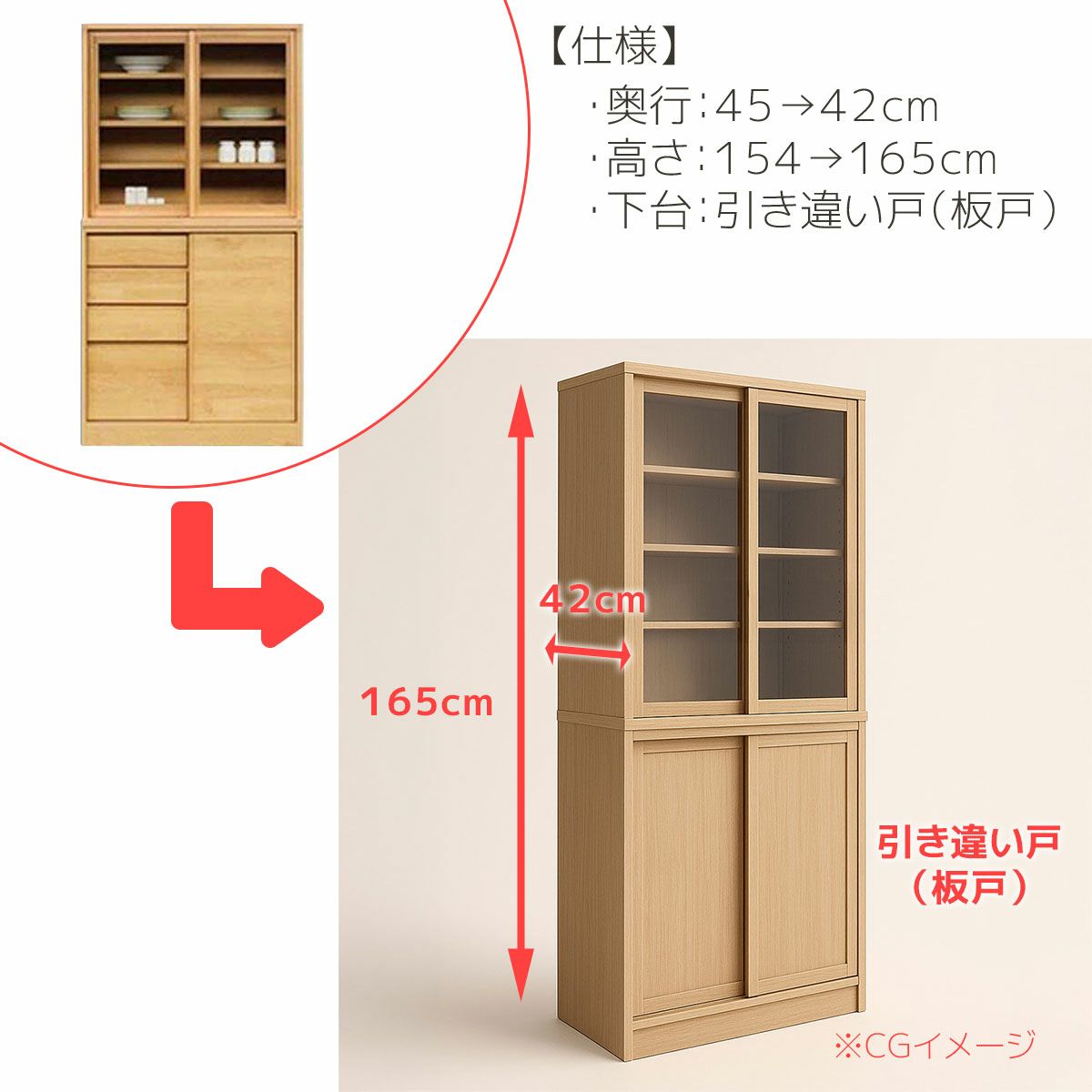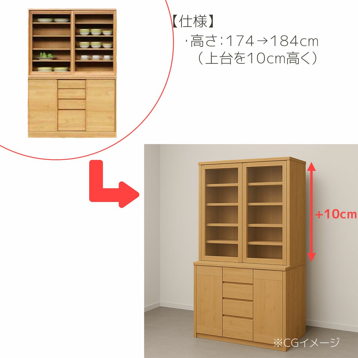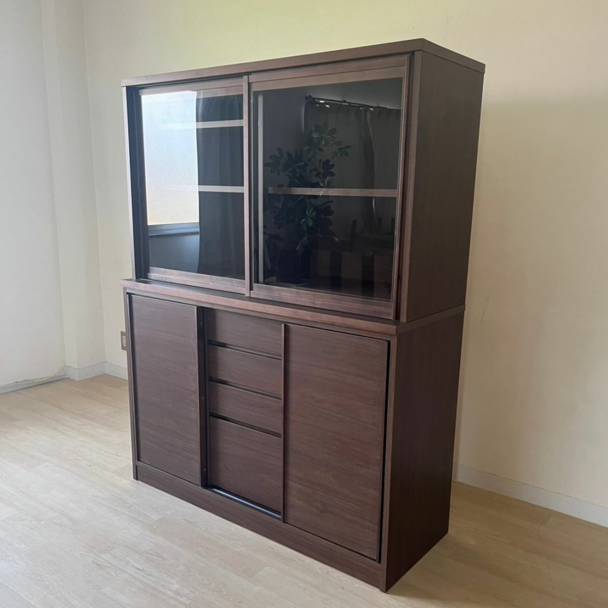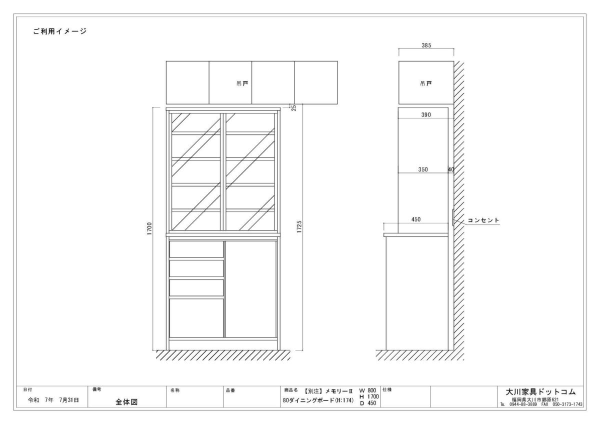 | 奥行の内寸が45cm以上ある食器棚。ヘルシオなど奥行があるスチームオーブンも置けるタイプです(オーブンレンジのサイズはご自身でご確認ください) | |