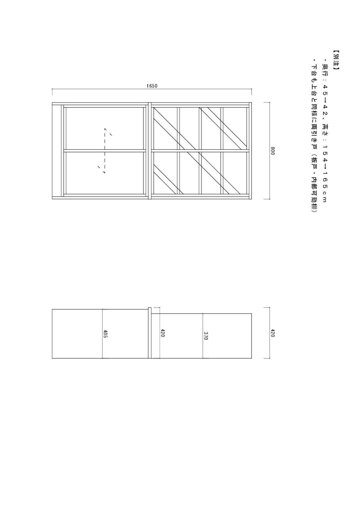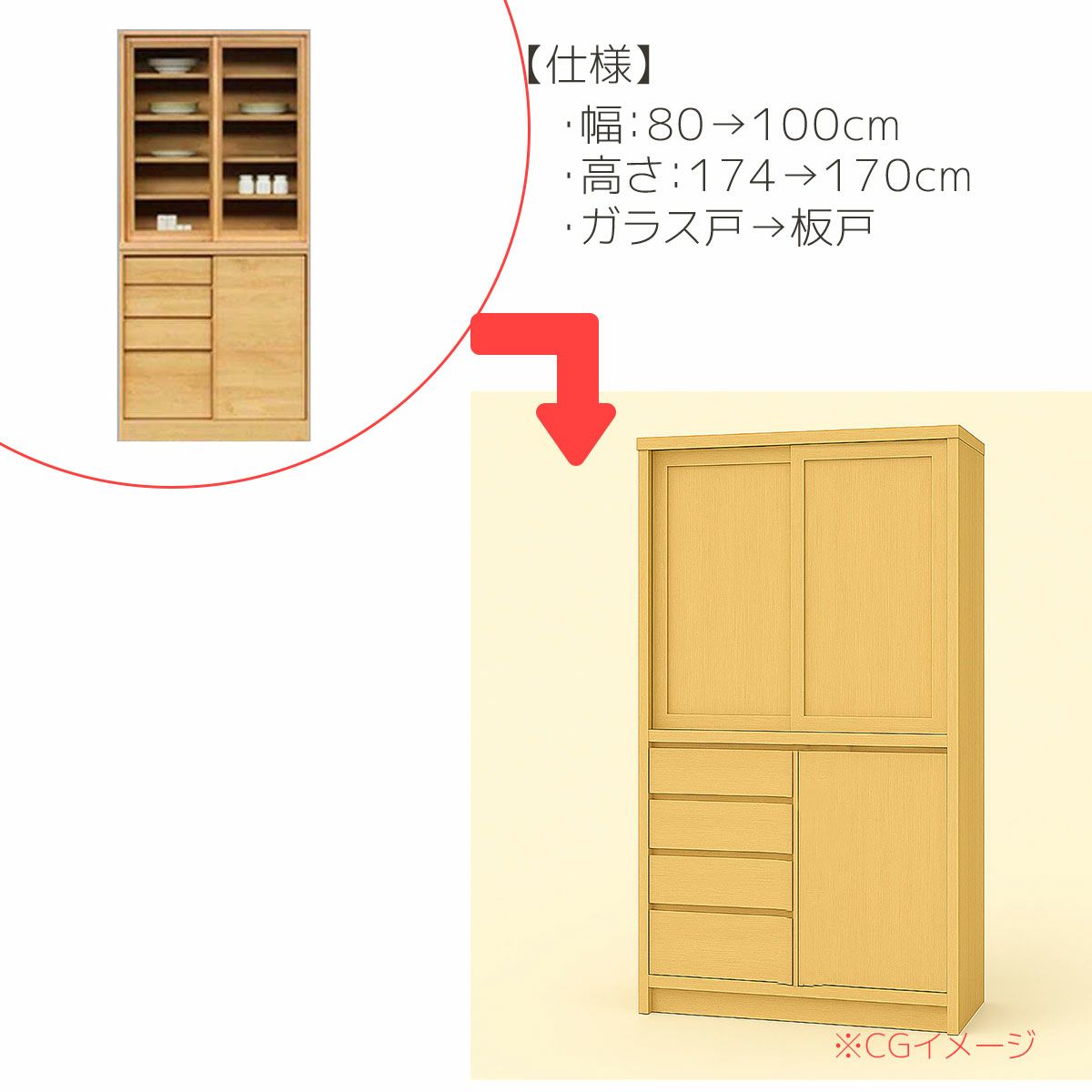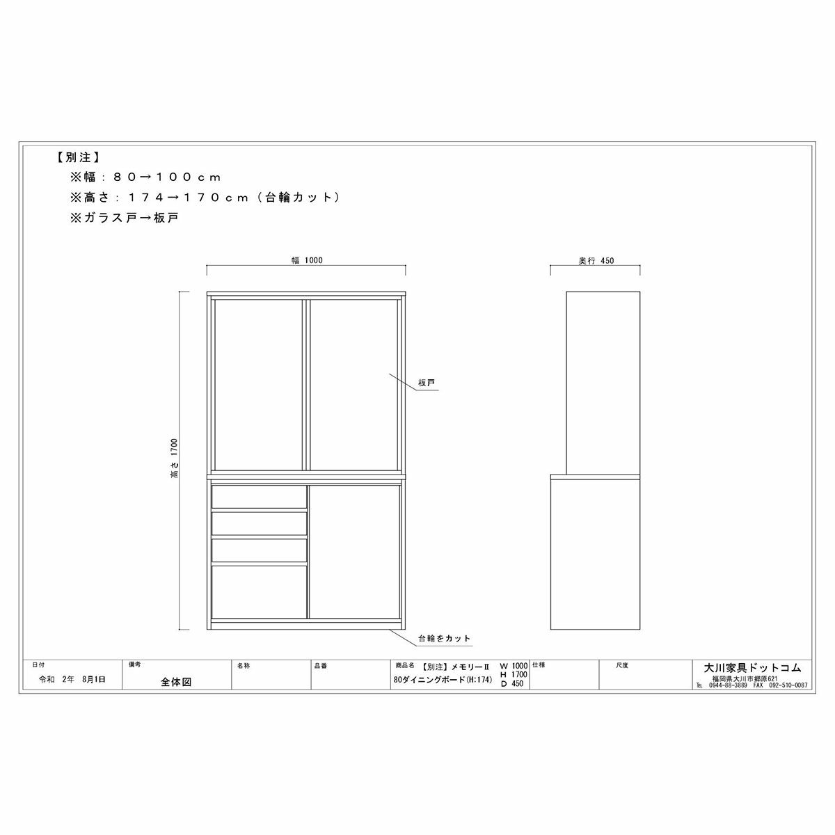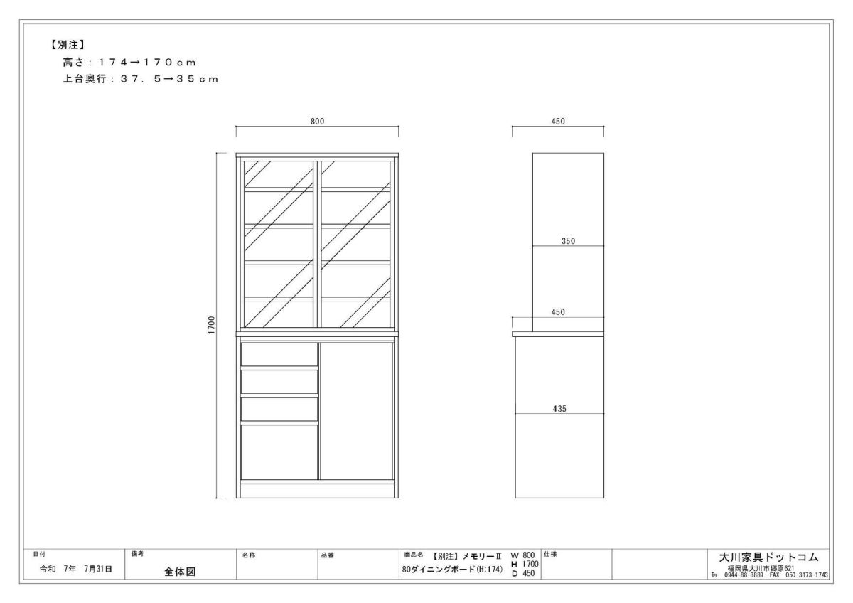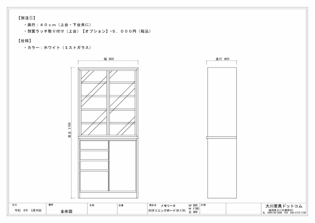 | 奥行の内寸が45cm以上ある食器棚。ヘルシオなど奥行があるスチームオーブンも置けるタイプです(オーブンレンジのサイズはご自身でご確認ください) | |