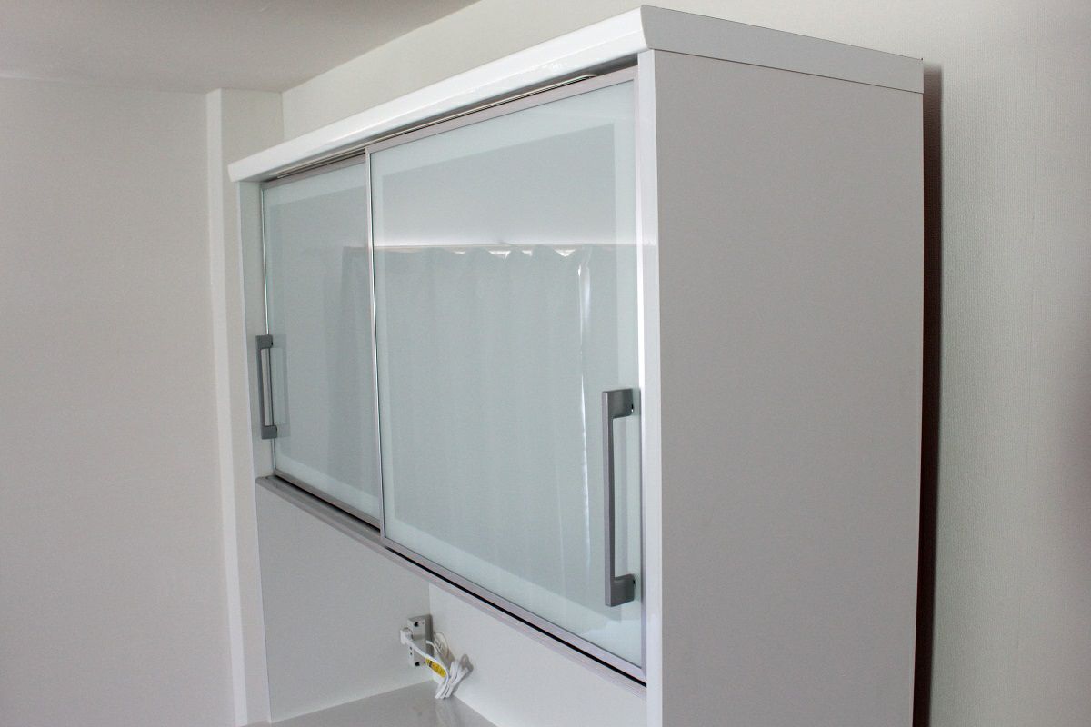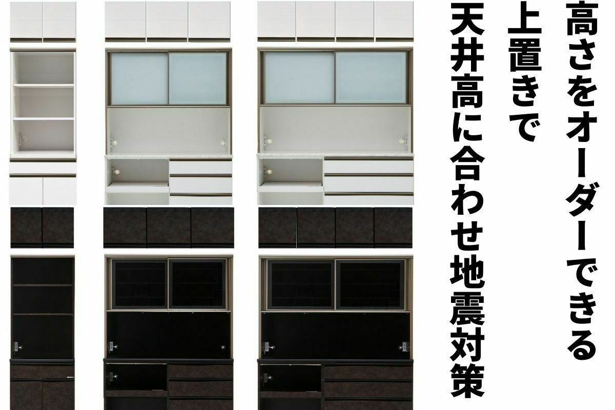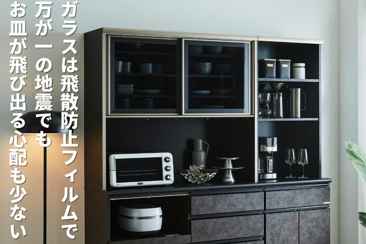 | 奥行の内寸が45cm以上ある食器棚。ヘルシオなど奥行があるスチームオーブンも置けるタイプです(オーブンレンジのサイズはご自身でご確認ください) | |