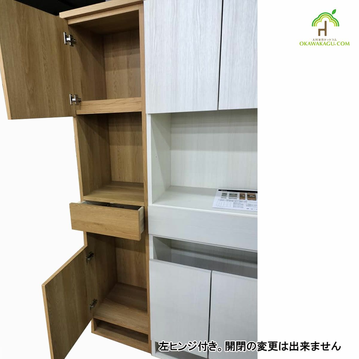 | 奥行の内寸が45cm以上ある食器棚。ヘルシオなど奥行があるスチームオーブンも置けるタイプです(オーブンレンジのサイズはご自身でご確認ください) | |