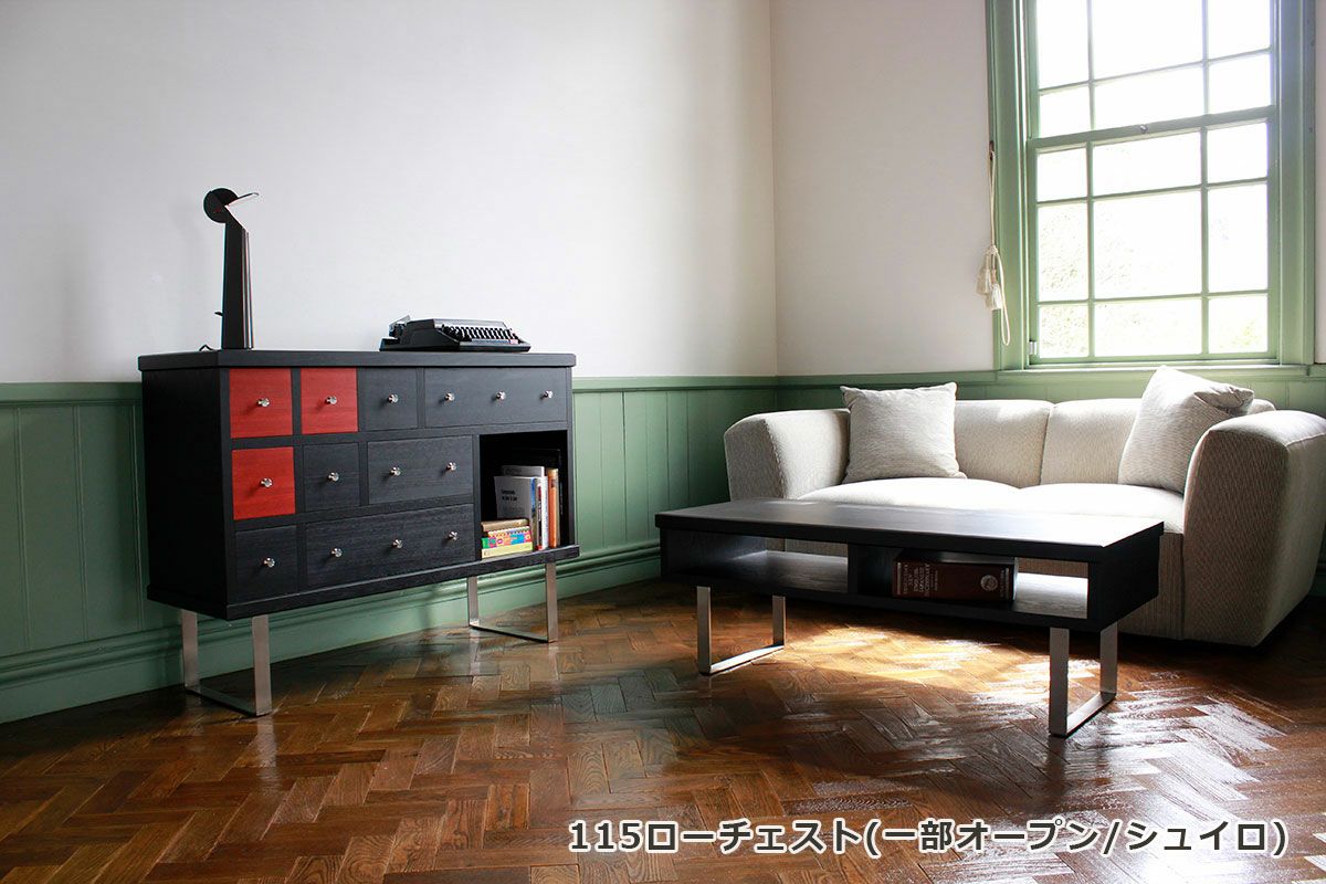 テーブルの天板やキャビネットで裏側も化粧仕上げをし、背面が見えてもおかしくない商品。
