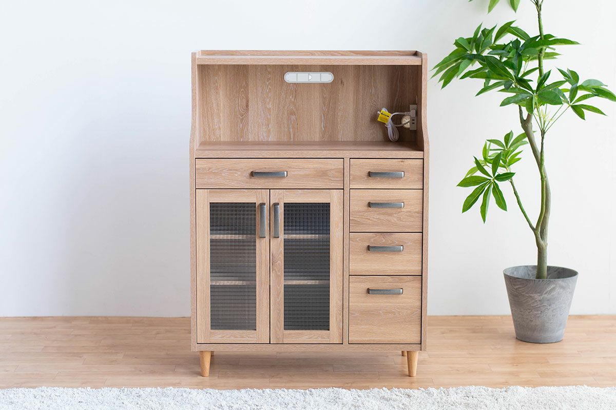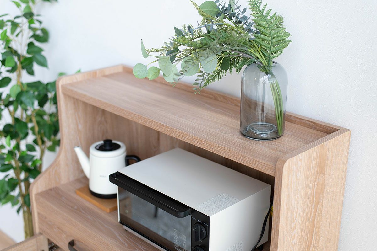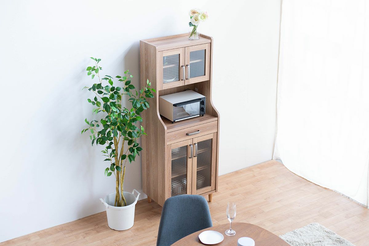 | 奥行の内寸が45cm以上ある食器棚。ヘルシオなど奥行があるスチームオーブンも置けるタイプです(オーブンレンジのサイズはご自身でご確認ください) | |