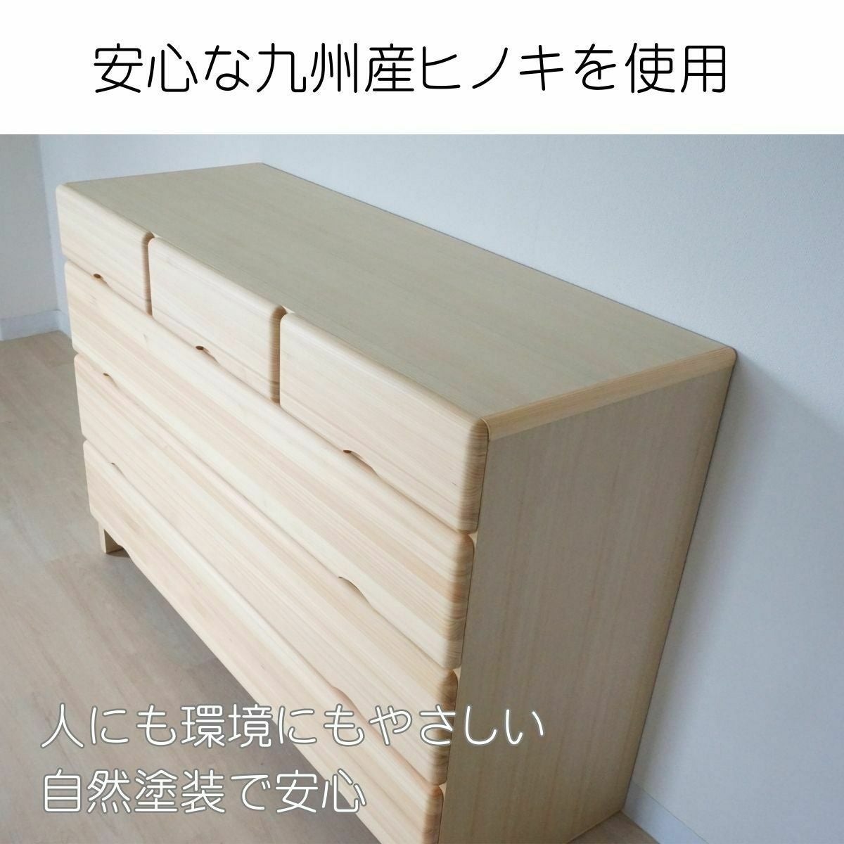 国内で伐採された木材を使用した家具。杉やヒノキが中心で、山林は適切な管理をしないと洪水や山崩れの原因となります。国産材を積極的に使うことにより山の管理が適切に行われるようになります。