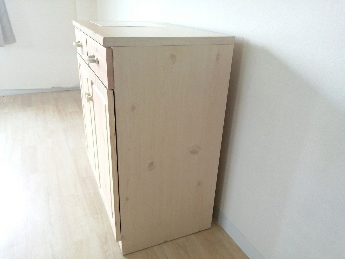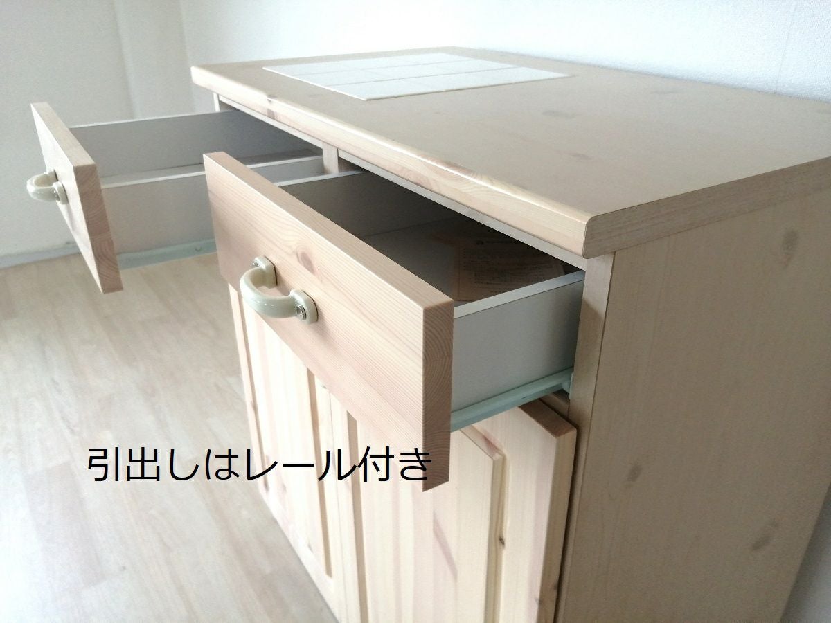 テーブルの天板やキャビネットで裏側も化粧仕上げをし、背面が見えてもおかしくない商品。