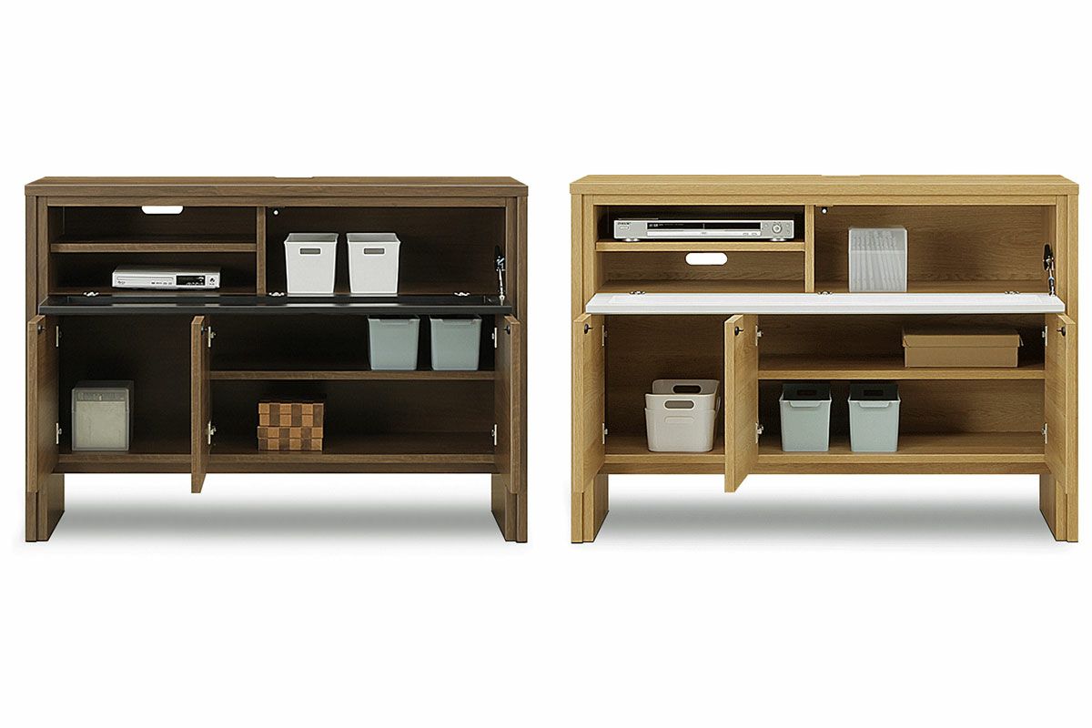 テーブルの天板やキャビネットで裏側も化粧仕上げをし、背面が見えてもおかしくない商品。