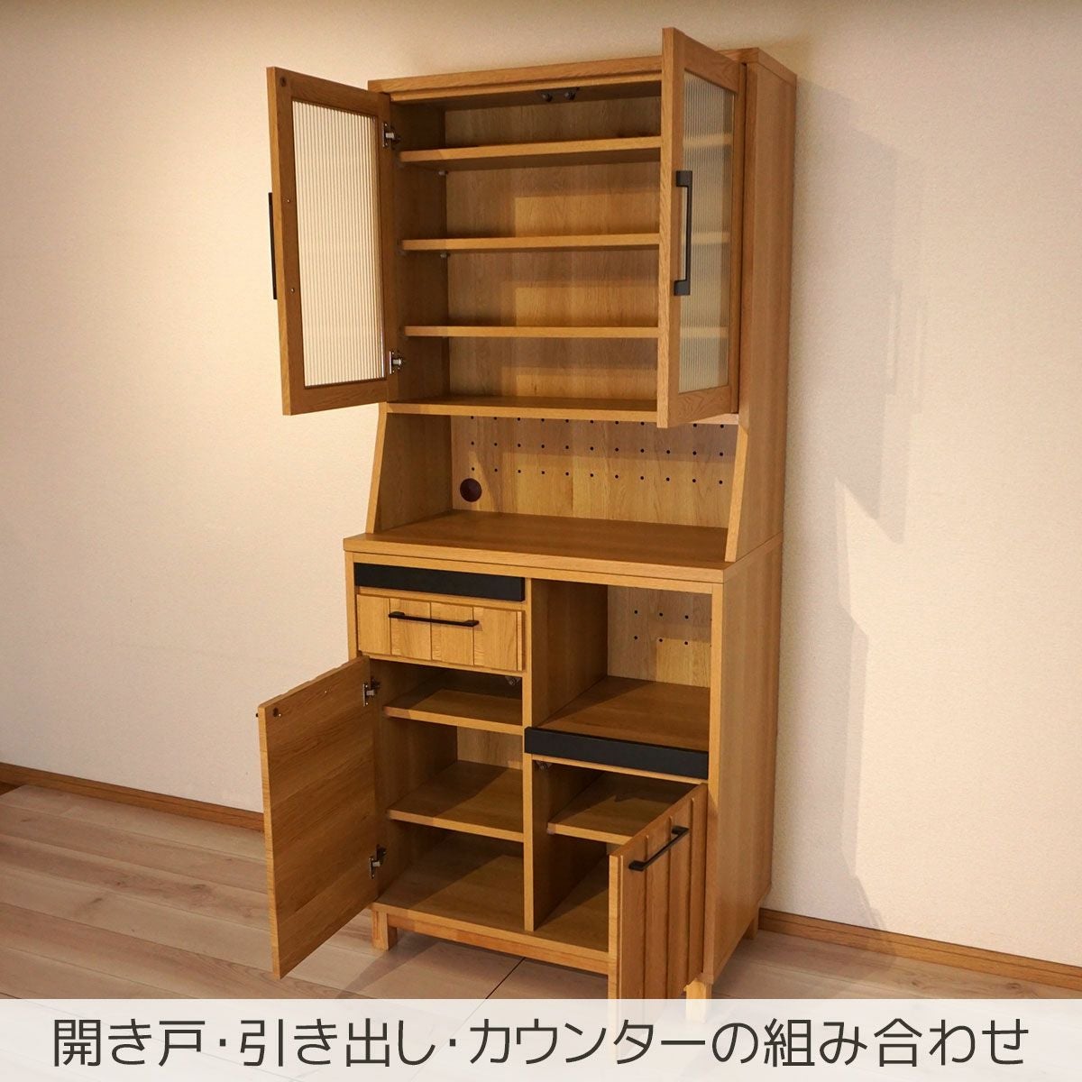 奥行の内寸が45cm以上ある食器棚。ヘルシオなど奥行があるスチームオーブンも置けるタイプです(オーブンレンジのサイズはご自身でご確認ください)