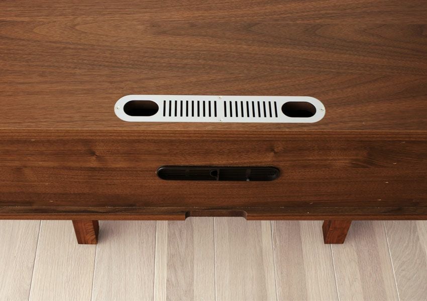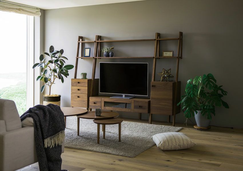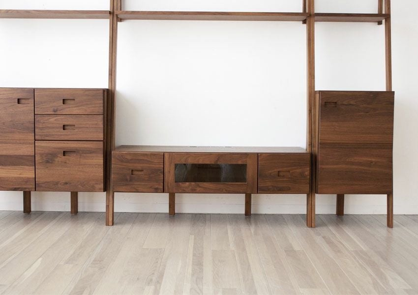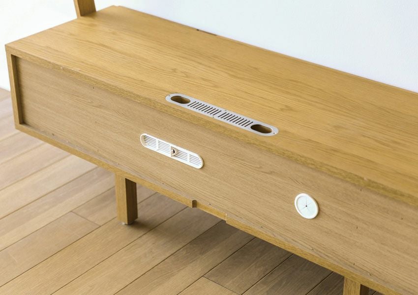 テーブルの天板やキャビネットで裏側も化粧仕上げをし、背面が見えてもおかしくない商品。