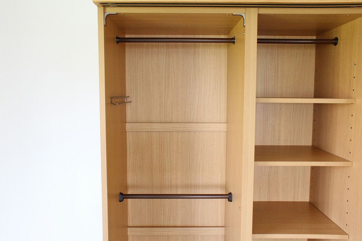 奥行の内寸が45cm以上ある食器棚。ヘルシオなど奥行があるスチームオーブンも置けるタイプです(オーブンレンジのサイズはご自身でご確認ください)
