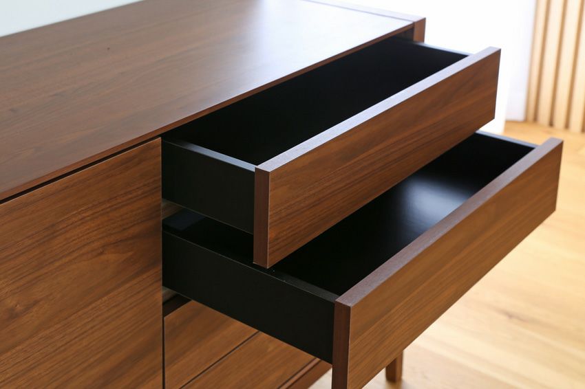 テーブルの天板やキャビネットで裏側も化粧仕上げをし、背面が見えてもおかしくない商品。