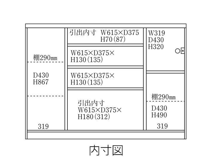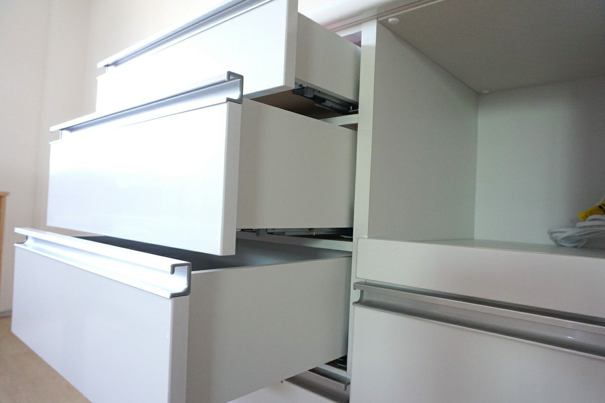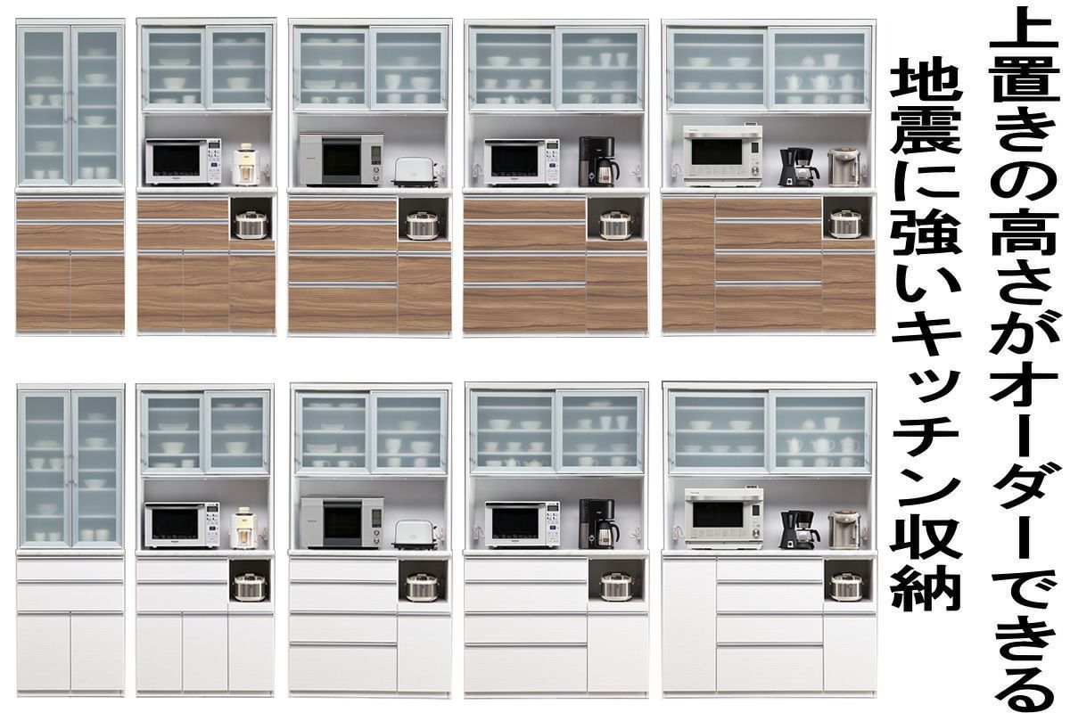 奥行の内寸が45cm以上ある食器棚。ヘルシオなど奥行があるスチームオーブンも置けるタイプです(オーブンレンジのサイズはご自身でご確認ください)